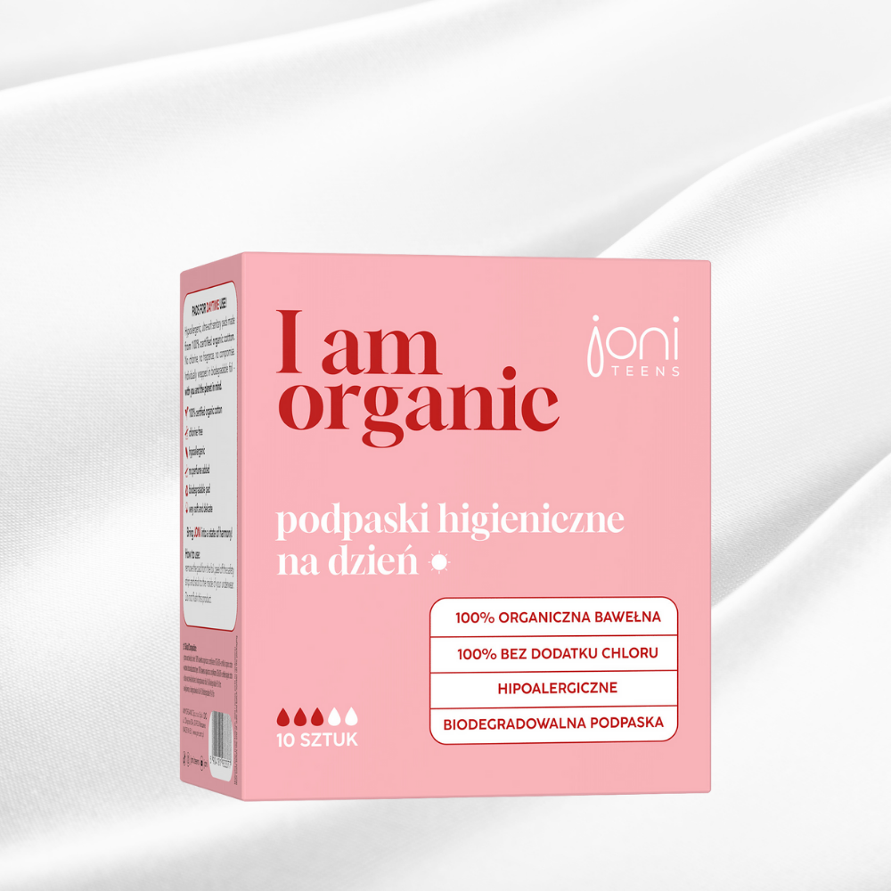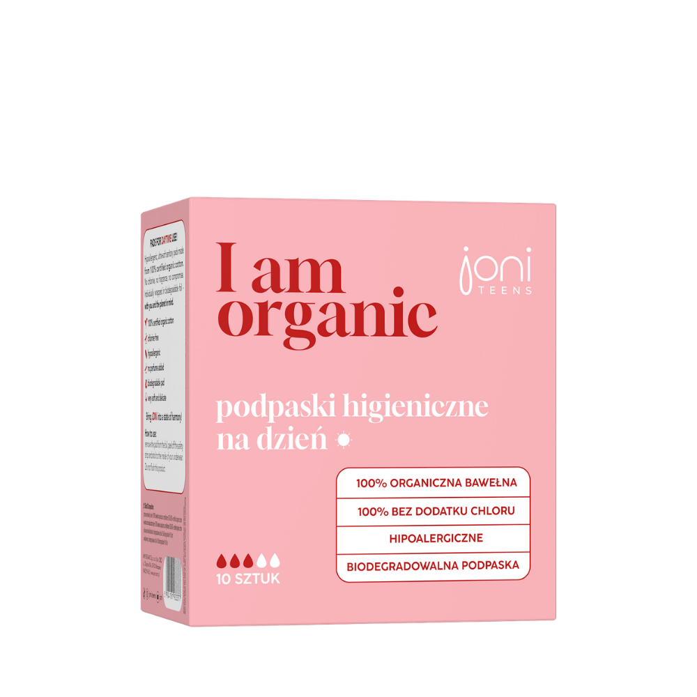 Hipoalergiczne, ultra delikatne podpaski na dzień JONI TEENS stworzone ze 100% certyfikowanej bawełny organicznej. Bez chloru, bez zapachu, bez kompromisów. Pakowane pojedynczo w biodegradowalną folię – z myślą o Tobie i planecie.